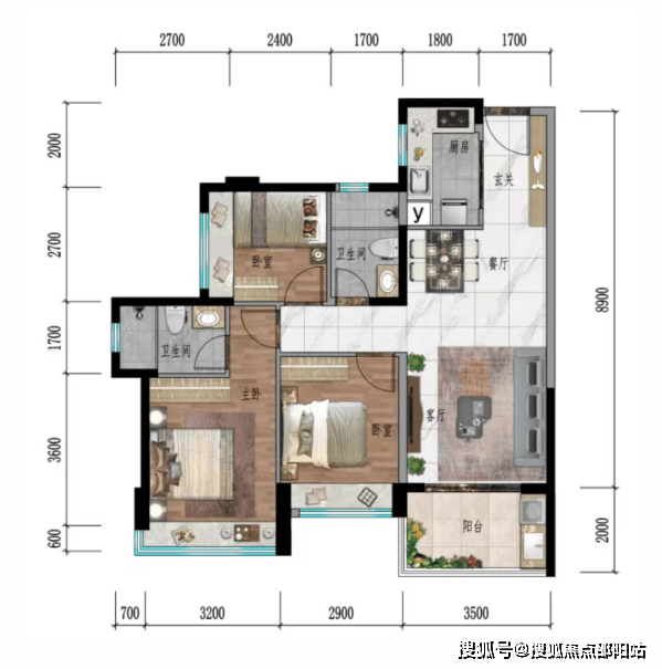 『中央园景 舒适三房』:94㎡户型 三房两厅两卫
