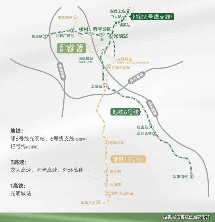 3地铁:邻6号线光明站、6号线支线(在建中)、13号线 (在建中)