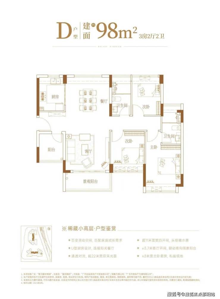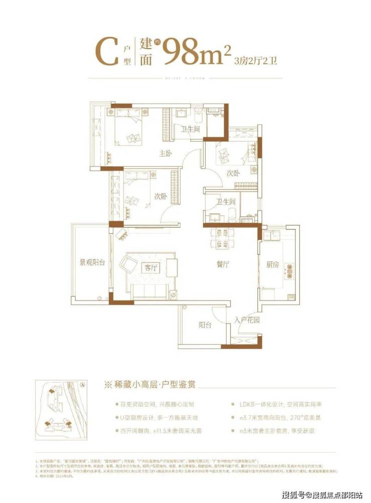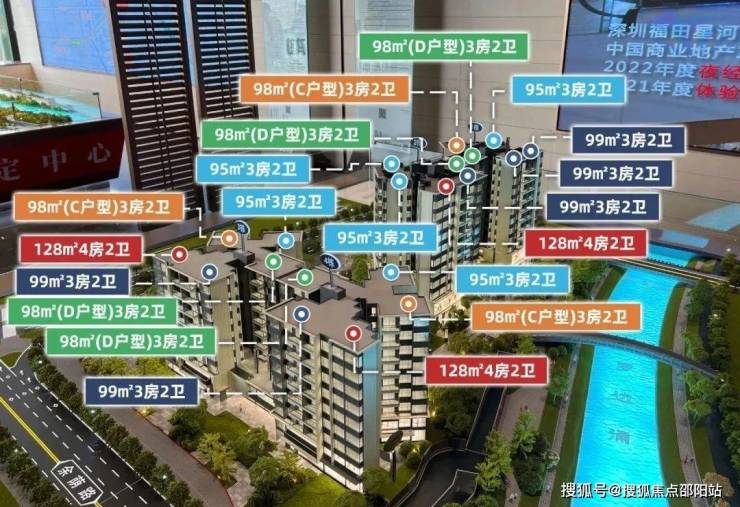 户型方面,选择会比较多,有95㎡三房、98㎡三房(有C、D两个户型)、99㎡三房、128㎡四房,一共五个,均为+1房设计,据说实用率达到约95%。