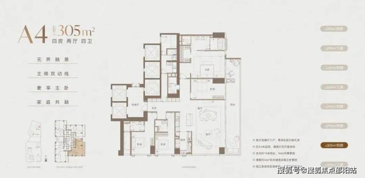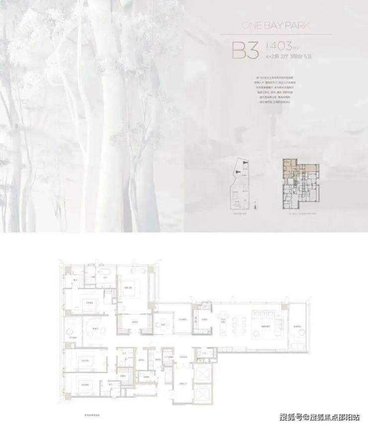 ②高区42F起(150-200米)是约370-375-403㎡4+1房五卫+家庭厅+家政套间;