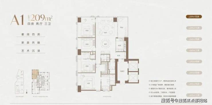 ①低中区5F起(150米以内)是约209-304㎡四房以上大户型;