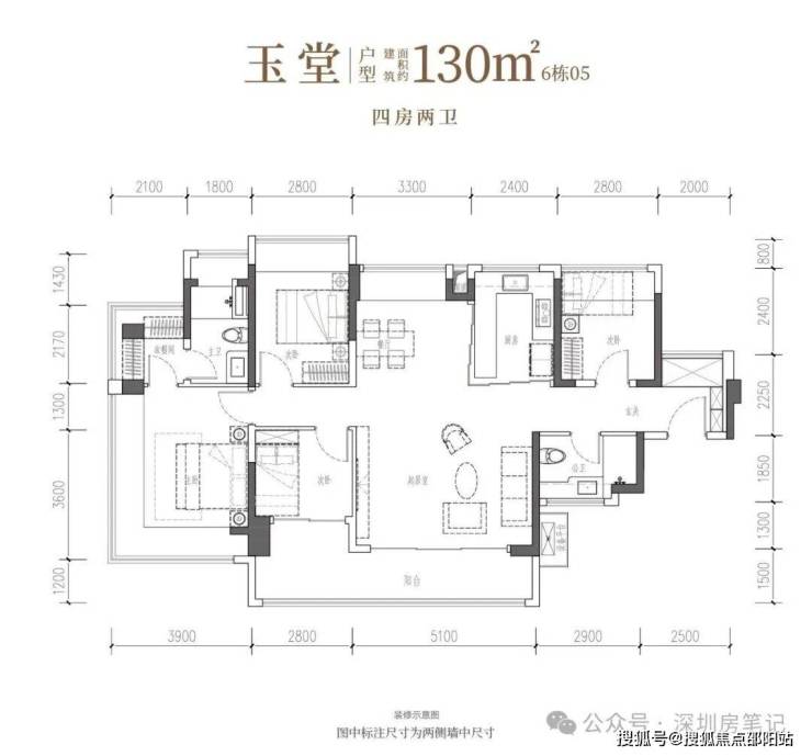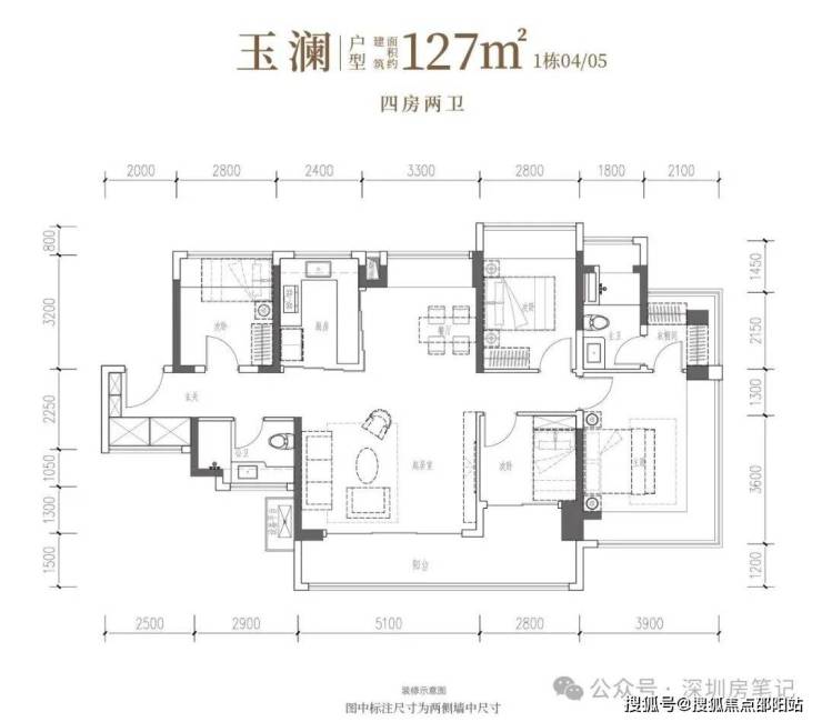 127-130㎡ 4房总价591-645万,单价4.66-5.07万/㎡。3