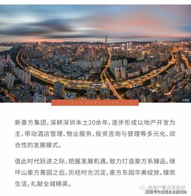 豪方东园是深圳市新豪方房地产有限公司在坪山打造的第二个楼盘。深圳市新豪方房地产有限公司为深圳本土开发商,在南山开发有多个项目,近年较为知名则是豪方天际。