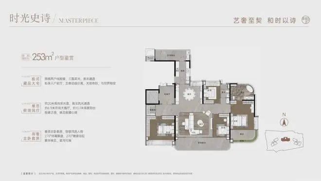 项目一共有3栋楼,层高20-26,总户数仅166户,产品为157-196-203-253-257平大平层,主打豪宅,面向的客群非常纯粹。 全盘仅166套,可以说相当稀缺。