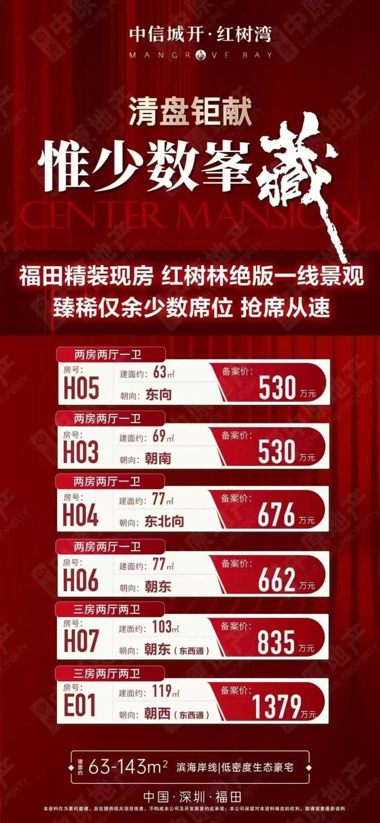 中信城开红树湾保留房源放出(目前可以收诚意金,锁定房号,等到7.1流程走完就直接认购了)
