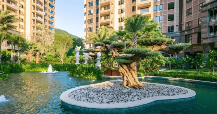 小区园林设计独具泰式风情,传承高贵血统与奢华气质。低容积率设计让生活充满阳光,融合自然山水原则,打造一方泰式皇家园林,演绎异域之美。
