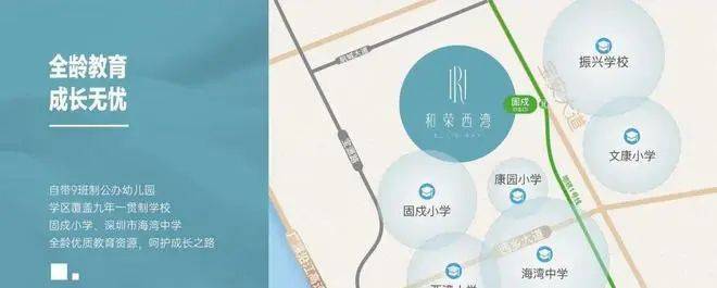 项目自带9班制公办幼儿园,学区覆盖九年一贯制固戍小学、深圳市海湾中学,启航精英人生路。