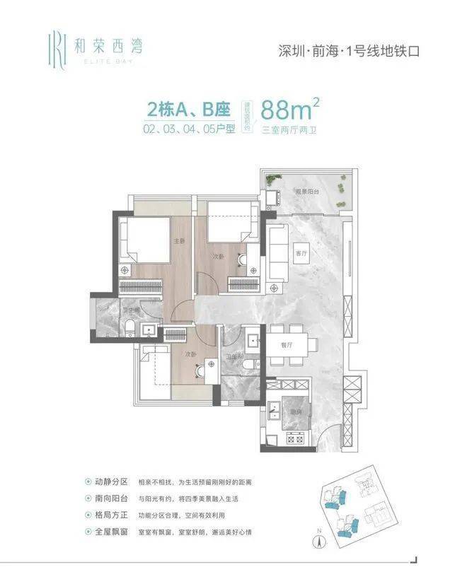 87/88㎡ 3房2厅2卫总价约460-526万