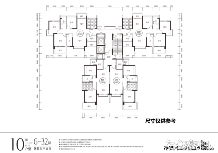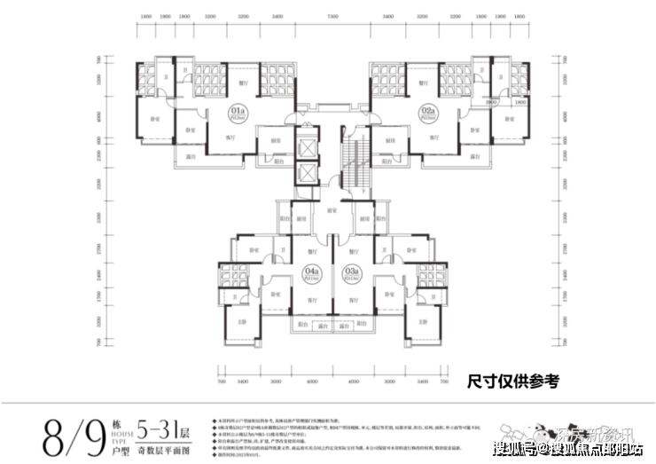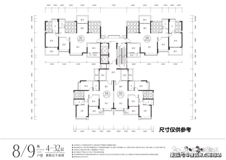 四栋楼,一层三户或一层四户(现在很多中小户型新盘基本都是一层6户左右)