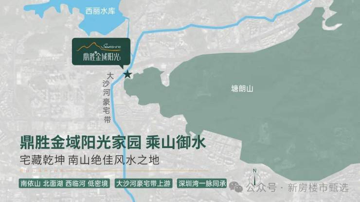 项目南依塘朗山,北面西丽湖,西临大沙河,推窗观山,临街瞰河,不仅营造了豪宅级居住体验,更是南山绝佳风水之地。