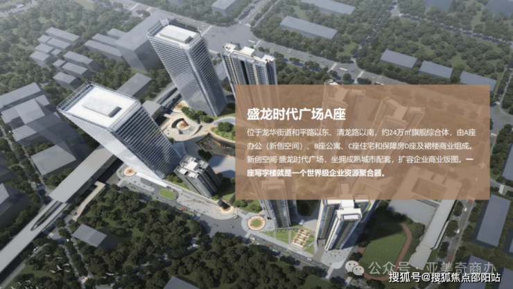 位于龙华街道和平路以东、清龙路以南,约24万㎡旗舰综合体,由A座办公(新创空间)、B座公寓、C座住宅和保障房D座及裙楼商业组成。