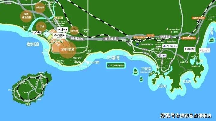 【交通】主干道崖州大道(毗邻)、G98环岛高速、三亚市凤凰机场(高铁十几分钟到达)、高铁崖州站距离项目直线距离2.5㎞、58路公交车通行三亚市区、1-4路及6路(均可抵达崖州火车站,其中1路可到南山文化景区、6路可到科技城及大小洞天景区)