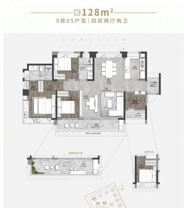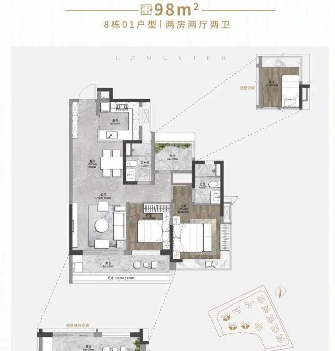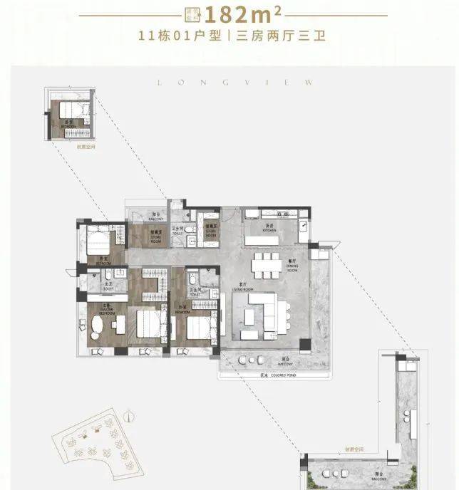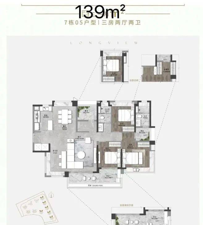 有竖厅和横厅设计,约 8.4 米面宽,景观阳台长 7.7 米,LDKB 一体化设计,空间开阔,家庭互动性强 。主卧 270 度景观飘窗,面积约 20 平,兼具收纳与观景功能 。总价 620 万起,满足改善型家庭对空间和品质的追求 。