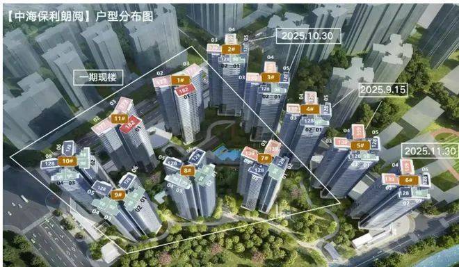 中海保利朗阅位于发展成熟的广钢新城板块 。由中海地产与保利发展联合打造,总栋数 11 栋,总户数 1616 户,产权年限 70 年 。占地面积 50911 平米,建筑面积 220629 平米,容积率 4.33,绿化率 35%,车位配比 1:1.5,得房率 85 - 90%,为精装修交付 。目前主要在售 98 - 182㎡三四房产品,一期有现房,二期今年 9 - 11 月收楼,凭借其优质配套与产品设计,成为广钢新城改善型住房的热门选择 。