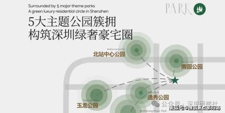 南园公园、北站中心公园、逸秀公园、白石龙音乐公园、玉龙公园环绕;