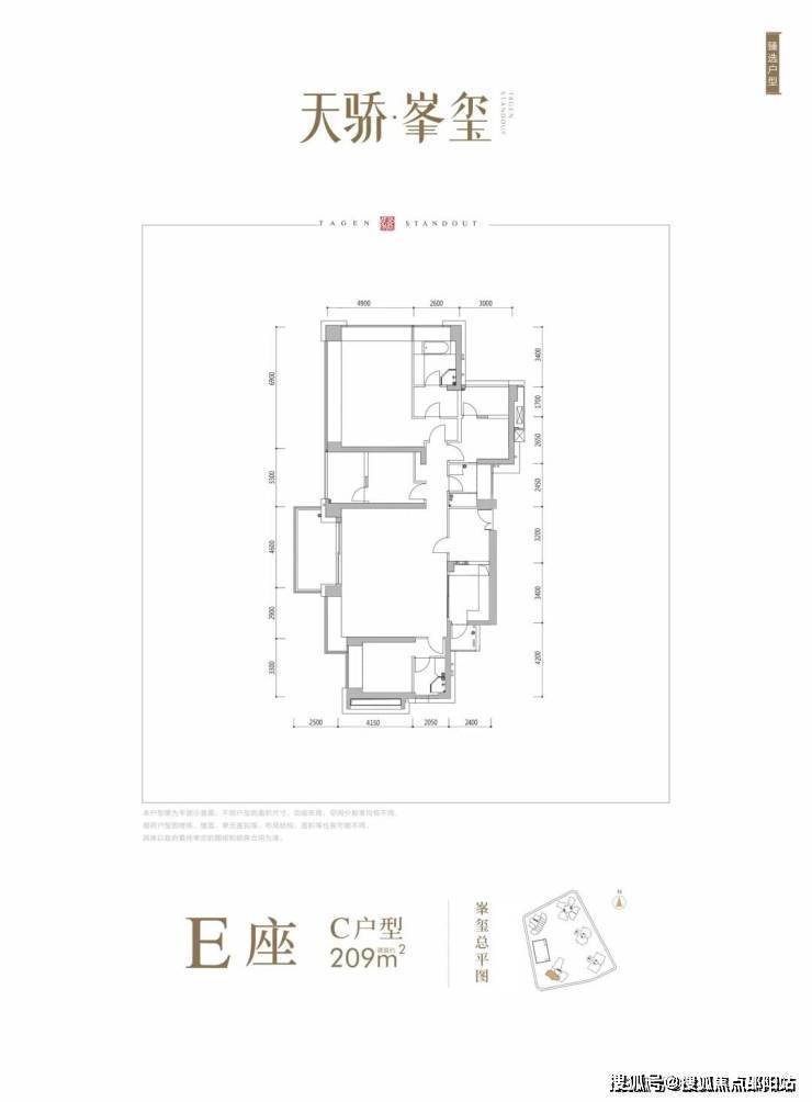 E座:约209-211㎡4房3卫 南北通