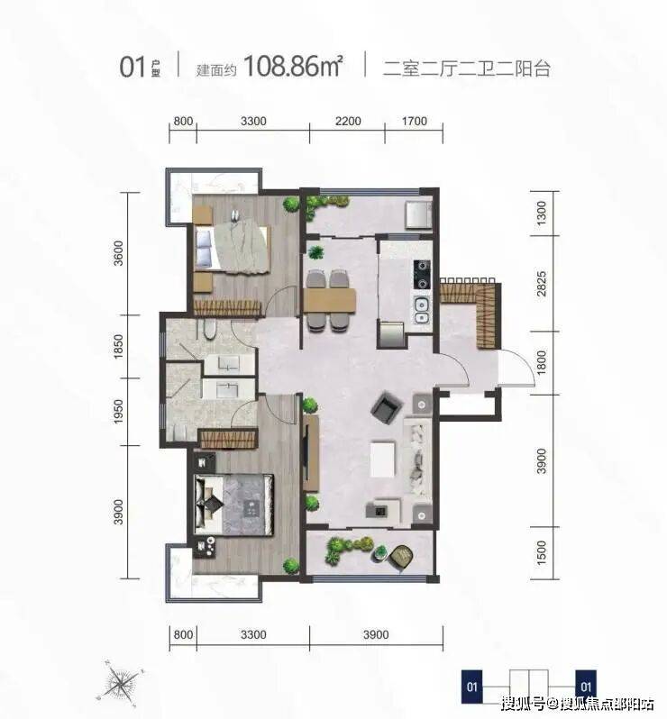 01户型丨建筑面积约108.86㎡