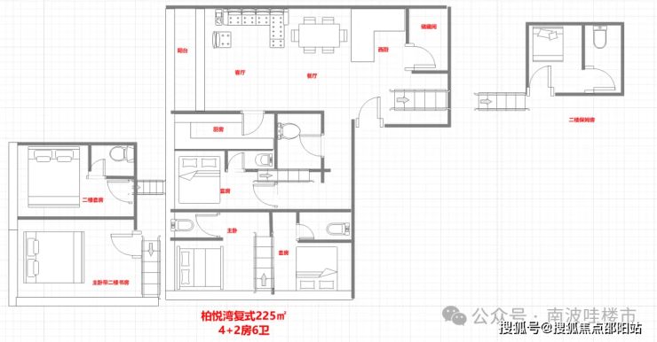 225-252㎡4+2房6卫,东北深圳湾+城景,西北前海湾+城景,东南深圳湾+大小南山,西南前海湾+大小南山