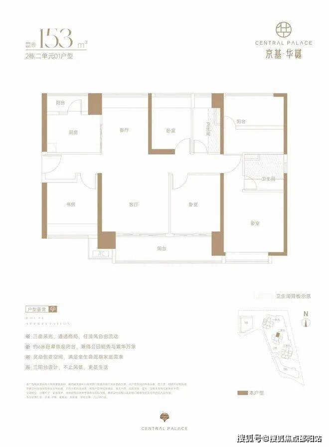 仅2栋2单元05户型才有,设计的是经典竖厅格局,LDKB一体化,动静分区,京基华樾售楼处电话:4008597606,四开间朝南,U型厨房,卫生间干湿分离,得房率约73%(不含赠送),阳台西南朝向。