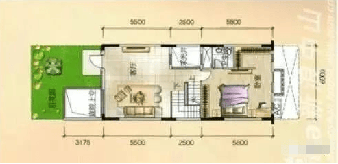二层南北分别是带露台的客厅和一个书房。客厅连通空中露台,因此采光通风性能俱佳,同时露台种植些绿色植物能让生活和自然多一分和谐。