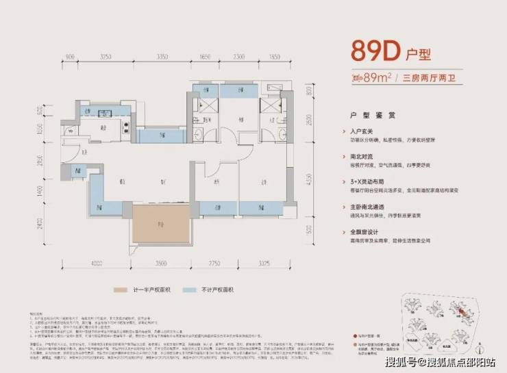 89㎡3房:268-302万,单价2.98-3.39万/㎡