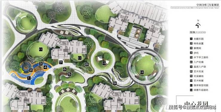 ③点阵式布局,保证科学的通风采光,超宽楼间距,最宽可达95米,最大化预留地面活动空间,园林面积达6.5万㎡,相当于8个标准足球场大小。