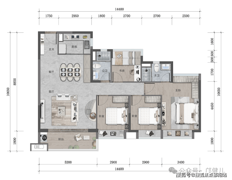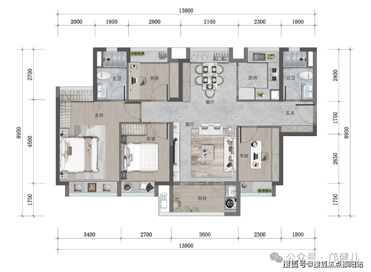 双卧室套房格局,提升家庭的生活质感,父母房间也能拥有独立明卫