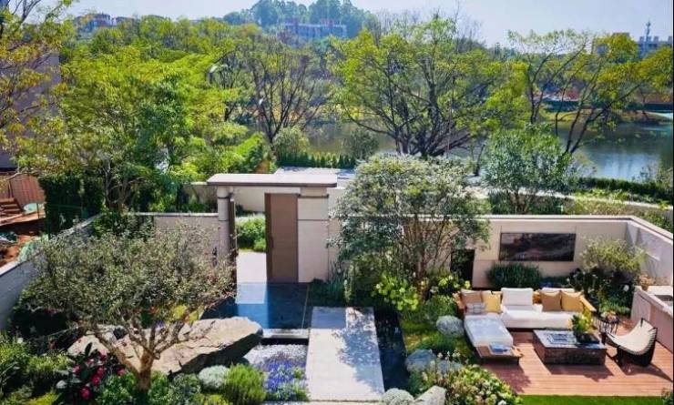配合地形高差实现南北错层入户——下叠南向花园入户,上叠北向独立门厅,彻底规避动线交叉,私密性比肩独栋。