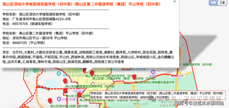 自带一所九班公立幼儿园,南二外平山中小学,深圳大学城丽湖实验学校初中部