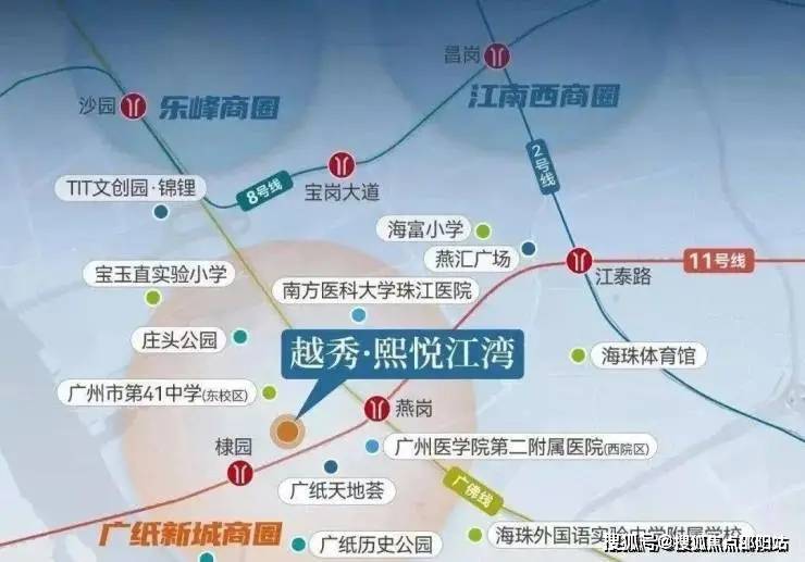 1、交通:越秀·熙悦江湾紧邻双地铁站点,与广佛线燕岗站直线相距400米,同时与在建的11号线棣园站直线距离仅250米,步行可达,7站即达珠城。越秀熙悦江湾 售楼处电话:☎400-892-2273