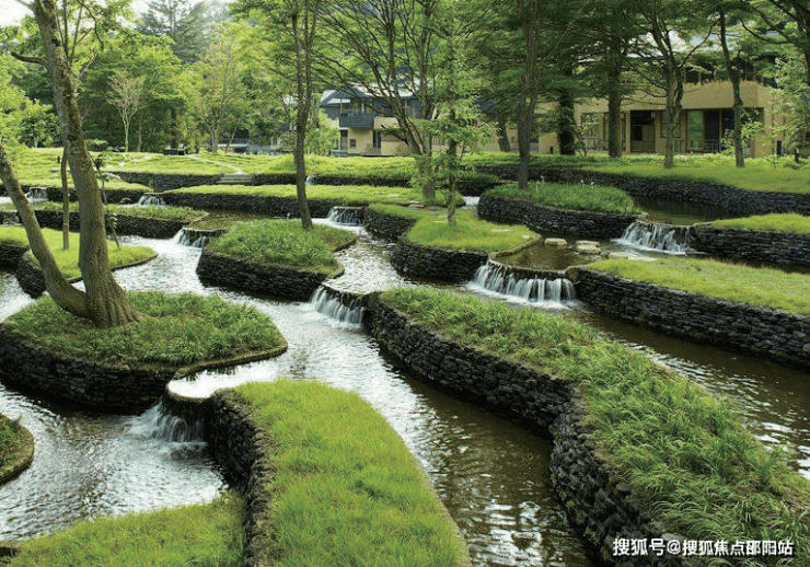 湿地公园—社区园林—自家庭院,景观由远及近,相互辉映,意境深远;整体采光井面积超大,使得整个地下空间的采光通风最大化;