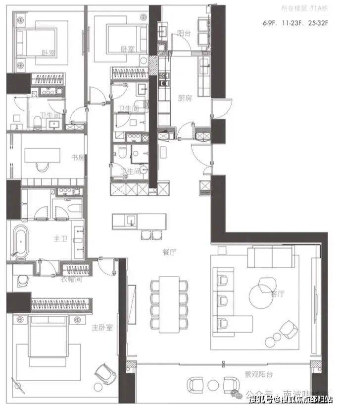 04户型 东端户 约350㎡ 四房两厅四卫(01、04镜像对称)