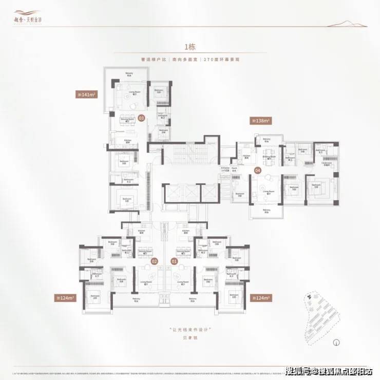 ③楼栋单梯腿,南向多面宽,采光通风最大化。