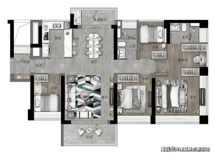 ④主卧南向;百变衣帽间,空间随心改。