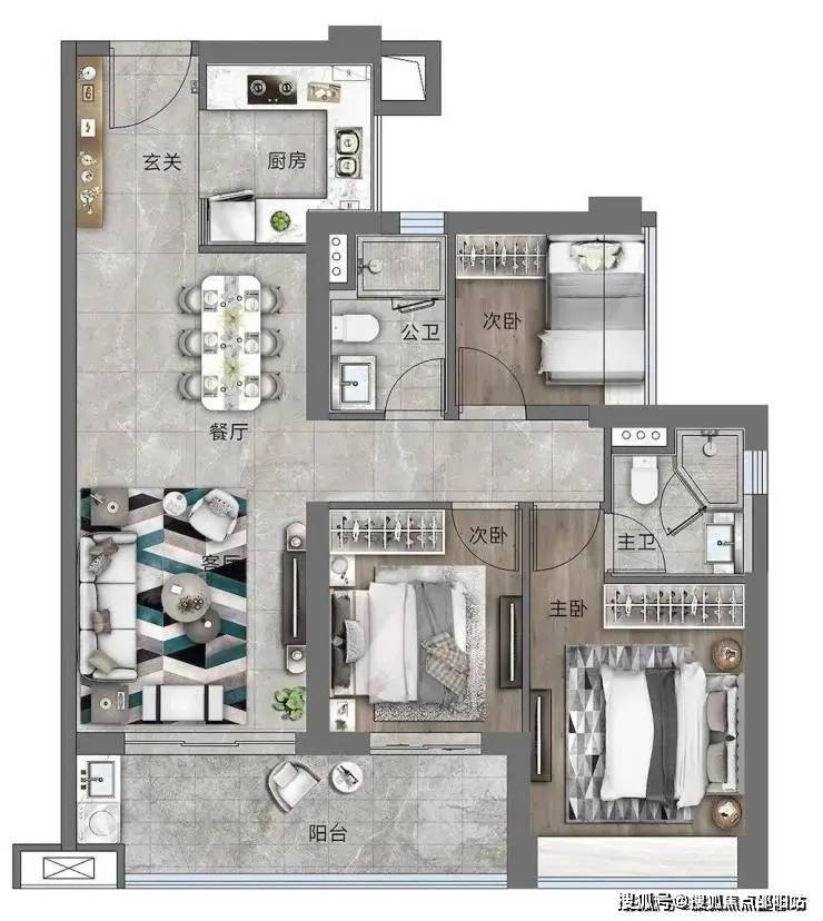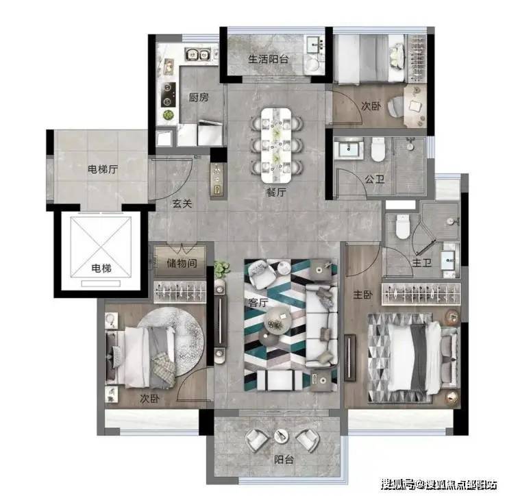 ②南北双阳台设计,南北对流更通透