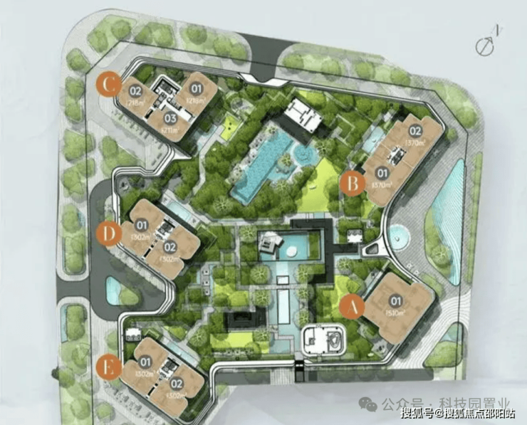 从平面图可以看到,A、B栋370㎡和510㎡东偏南看海,C-E栋的211-302㎡朝南偏点西,近看歌剧院远看海景(除了218㎡东南看小区园林)。楼栋之间错位分布,大多数户型都有不错的海景。