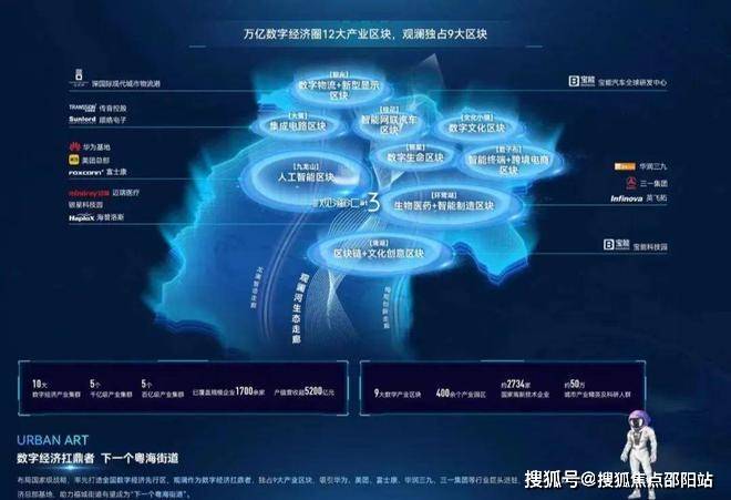 观澜——数字经济扛鼎者,打造万亿数字经济圈,12大产业区块独占其9,重点发展5G、人工智能等高新技术产业;吸引华为第二基地、美团湾区总部、富士康、三一云都等世界巨头入驻;未来约50万产业精英及科研人群汇聚。