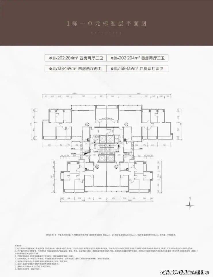【产品户型】:建面约202-204㎡四房两厅三卫