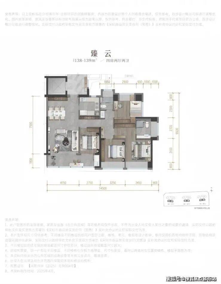 建面约138-139㎡四房两厅两卫