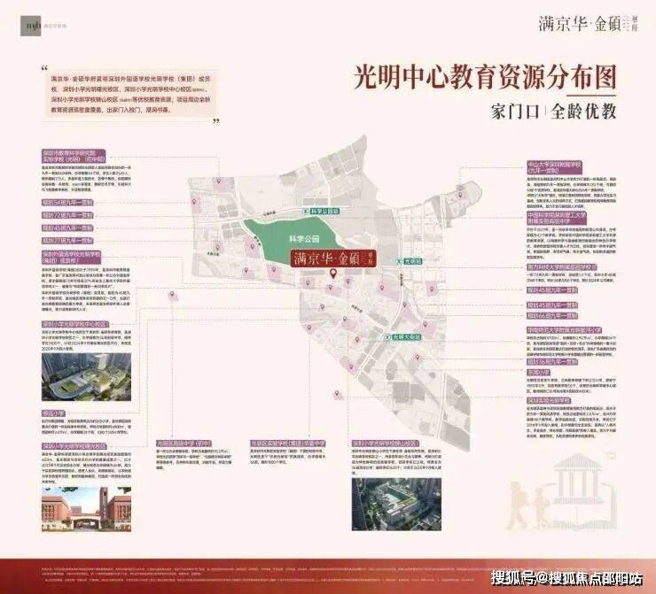 金硕臻府,由满京华集团开发,位于光明区光明中心区光辉大道与狮山三街交汇处,项目所在区域是光明规划最宜居,居住小区板块最大的片区,北侧靠近科学公园,东侧及南侧是深圳小学光明学校狮山校区及初中校区,距离最近的6号地铁线“光明站”约800米。