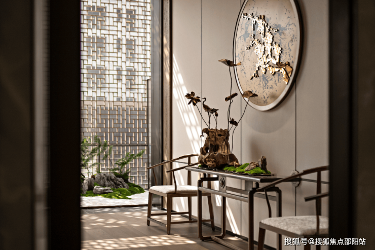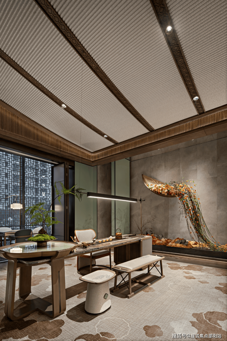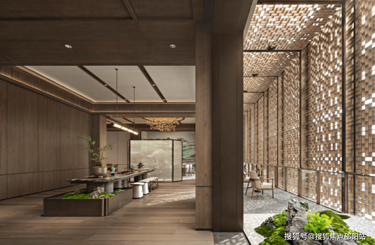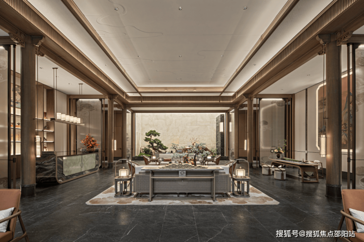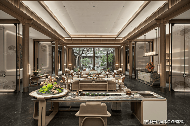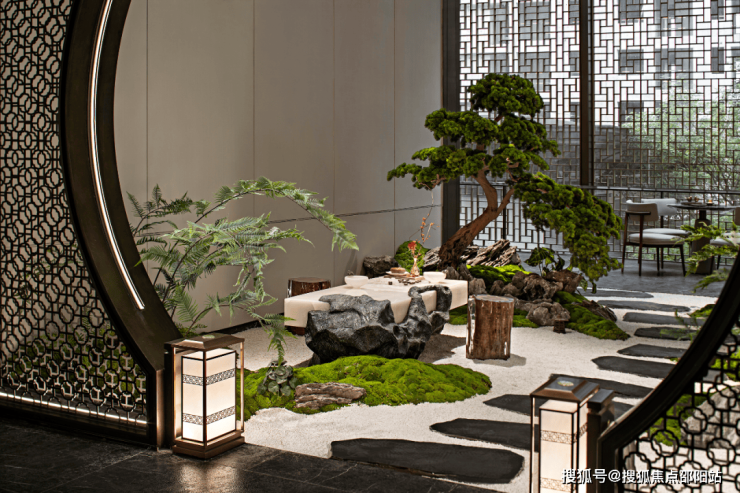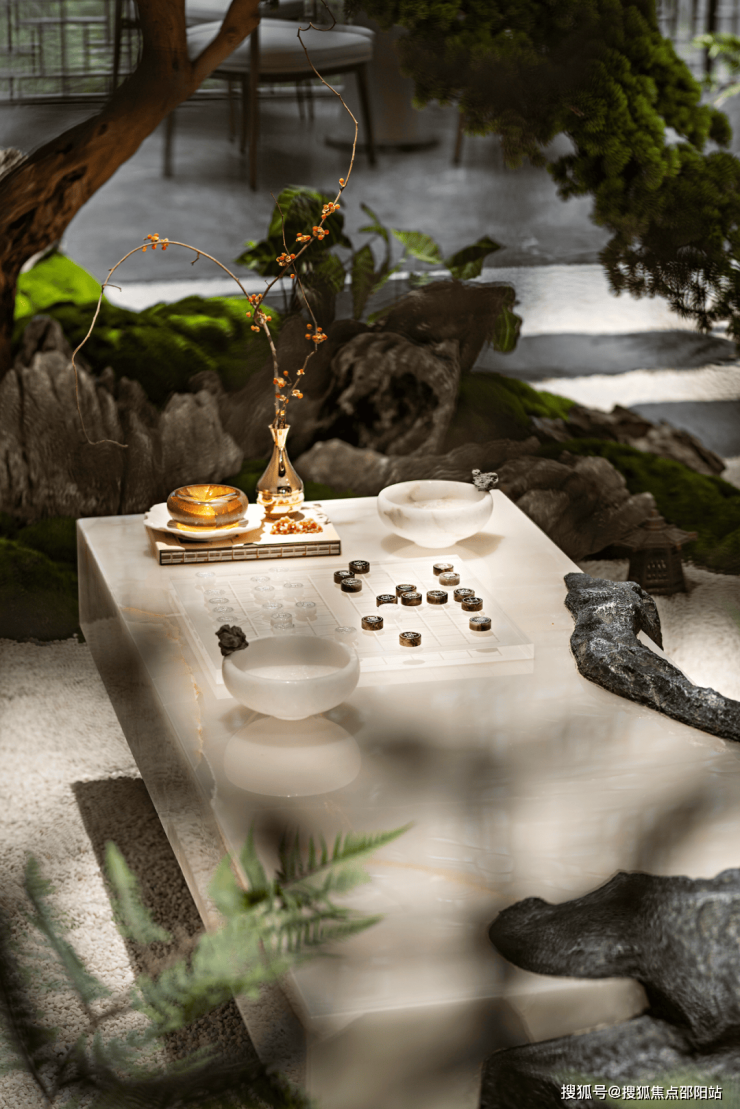 这是继深圳盘石设计为保利创新研发的首个天字系中式府邸「广州保利天瑞营销中心」后,再度打造的极富东方美学造诣作品——「瑞庭雅集」下沉式庭院会所。