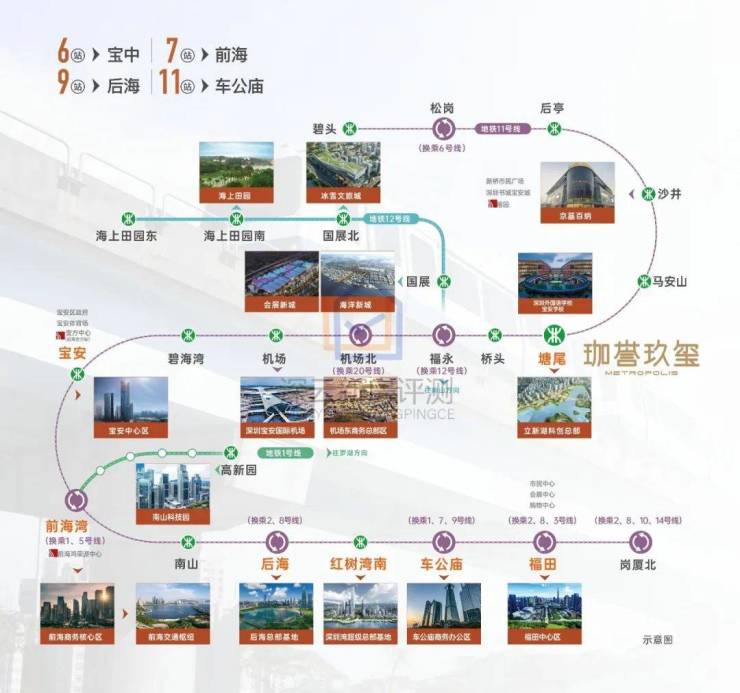 无缝连接11号线塘尾站,6站到宝中(22min),7站到前海(25min),9站到后海、11站到车公庙;邻近宝安大道,开车通行也便利;