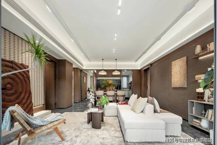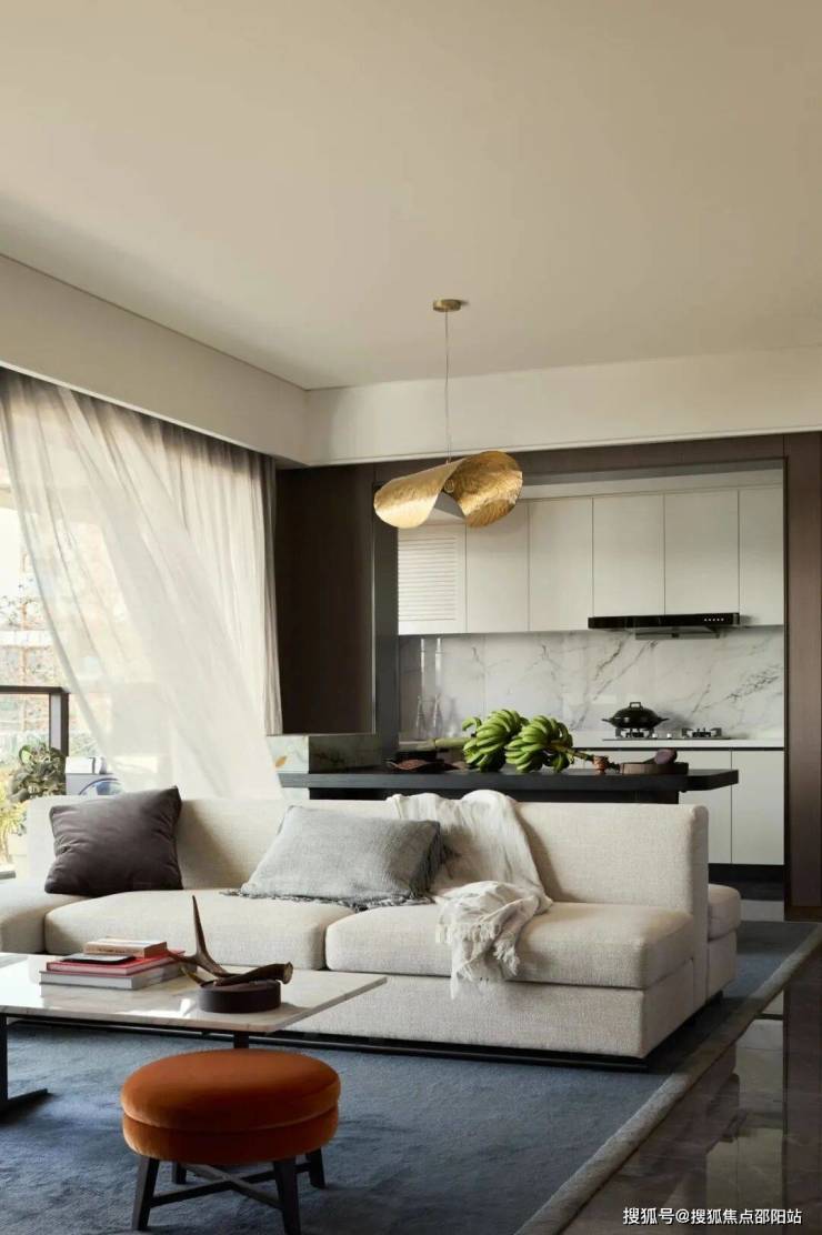 围绕舒适、随性的双面沙发,洄游动线串联餐厅与客厅,使空间营造的生活场景拥有无限想象,三五成群的聚会,与家人的亲密互动,和自己独处的时刻,都可以在这里共存。