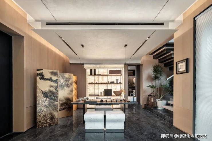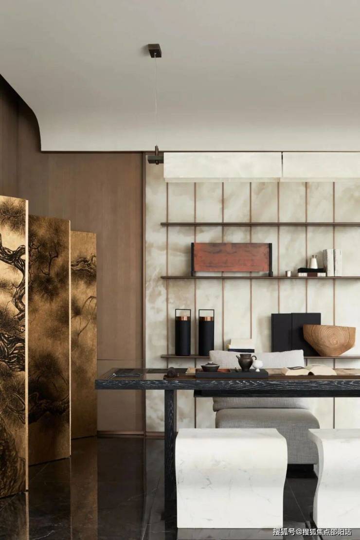 开放式茶室丰富客厅主题性,一壶香气四溢的茶在此沏启,茶雾轻轻弥漫在空气中,带走身心的疲惫,回归内心深处最真挚的宁静与放松。