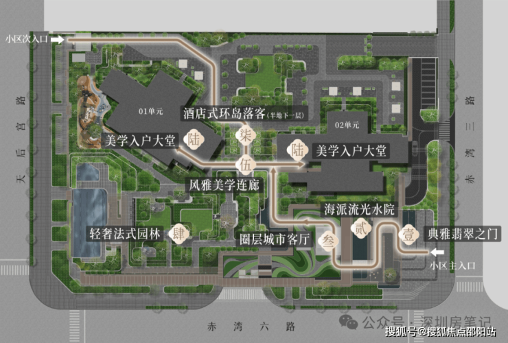 整个社区占地约1.36万㎡,总建面约5.88万㎡,容积率只有2.8,是赤湾片区最低的住宅项目之一。对比一下,旁边开云府容积率7.0,琅玥湾4.77,天健湾时代府的2.8低密度优势非常明显。