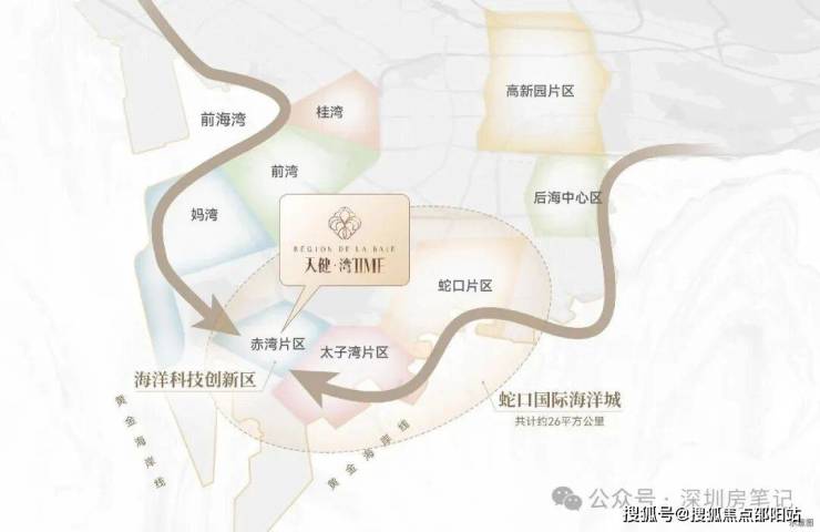 项目位于南山区赤湾,赤湾六路与天后宫路交汇处东侧。赤湾雄踞"蛇口-太子湾-前海湾"海岸线C位,左承前海发展辐射,右享蛇口国际高端生活方式,独享发展高端国际海洋科技规划,未来将实现超2000亿产值,吸纳约6万高端人才集聚,是深圳西海岸线发展的最后一块拼图。项目聚合了湾区+特区+示范区+自贸区四重国家战略红利。