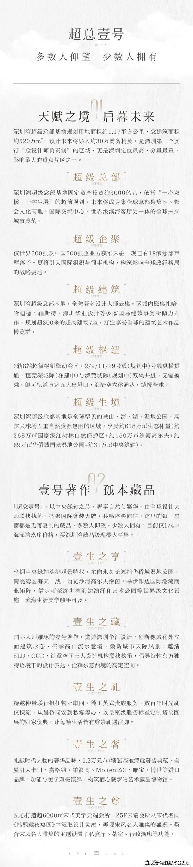 无缝衔接中央绿轴,畅享中央绿轴头排景观视野,无车化步行至深圳湾海边享受滨海生活12000元/㎡全球一线品牌奢装加持,CCD、梁志天、诗意空间等全球大师设计打造顶豪标杆 !