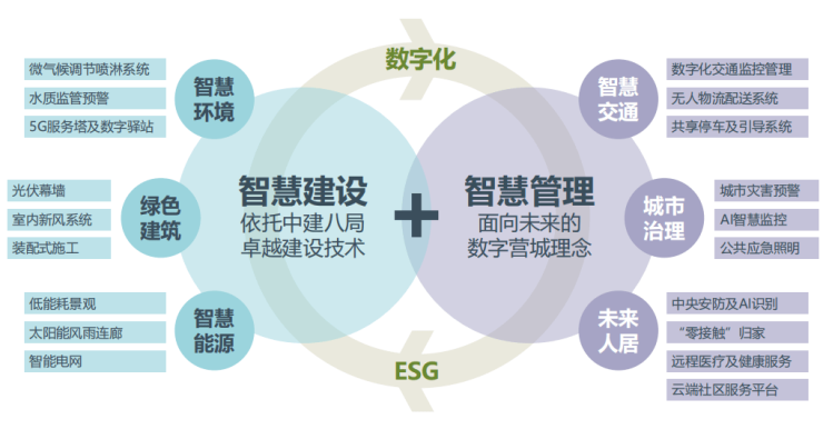 依托中建八局先进建设理念及建造技术,超前布局智慧设施,提升城市建设与综合管理能力。