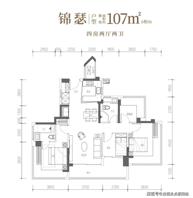 户型全屋都做上凸窗,亮点在于烟道外置,阳台部分空间可改造,加上小高层公摊少,赠送后高达100%。
