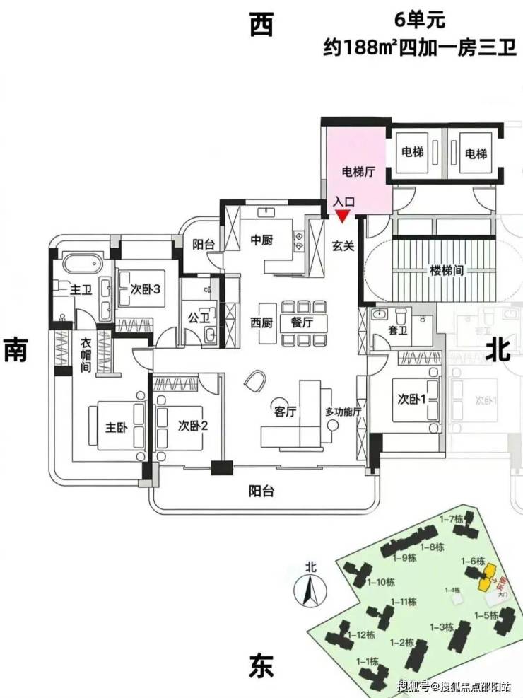 专梯入户设计:3T3户的是1/6/7/10/11/12单元,层高3.3米,大户型独门独户设计,私密性和尊贵感拉满,得房率接近100%,契合第四代住宅趋势。